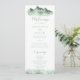 Este programa de casamento de caligrafia verde é perfeito para um casamento rústico. A design apresenta uma montanha verde pintada à mão de uma aquarela, inspirando um tema do campo.
