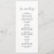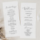 Este delicado programa de casamento de caligrafia negra é perfeito para um casamento moderno. A design romântica minimalista apresenta uma magnífica e elegante tipografia negra num fundo branco com um aspecto simples e limpo. Inclua o nome da noiva e do noivo, a data e o local do casamento, a mensagem do obrigado, a ordem do serviço, a festa noiva e um memorial "em memória amorosa" opcional.