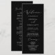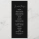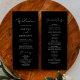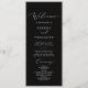 Este delicado programa de casamento de caligrafia negra é perfeito para um casamento moderno. A design romântica minimalista apresenta uma magnífica e elegante tipografia branca num fundo preto com um aspecto simples e limpo. Inclua o nome da noiva e do noivo, a data e o local do casamento, a mensagem do obrigado, a ordem do serviço, a festa noiva e um memorial "em memória amorosa" opcional.