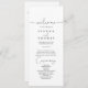 Este elegante programa de casamento de caligrafia é perfeito para um casamento rústico. O design simples e elegante apresenta a tipografia de scripts clássicos e ricos em preto e branco.