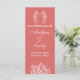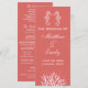 Esta design apresenta um recife de coral e um cavalo do mar casal. O fundo é uma cor bonito de salmão cor de laranja rosa. Personalize este programa com seus detalhes de casamento. Estas são excelentes para o tema da praia, oceano, litoral, casamentos costeiros e de destino. Envie-me uma mensagem se precisar de ajuda para a personalização. As costas podem ficar complicadas especialmente se você tem muitas pessoas na sua festa de casamento.