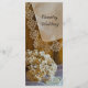 O casual, porém clássico, Programa de Casamento de Chuvas e Lugares das Flores pode ser personalizado com a linha do tempo e a ordem da sua cerimônia de casamento. Este programa de casamento, ao estilo de fazenda ocidental rústica, informal e elegante, apresenta uma fotografia floral tênue de madeira de celeiro castanho, um lenço branco vintage aparado, flores silvestres secas, colar de pérolas e véu nobre. Inpo perfeito ou ideia para uma cerimônia e evento de recepção de festas de fazenda relaxada.