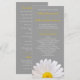 Você pode personalizar todo o texto desses programas de casamento personalizados de baratos, flores de margarida branca e amarela, cinzas (cinzas). O design apresenta um amarelo brilhante e alegre (ouro) e uma margarida branca em fundo de cinza prateada. Design floral simples e elegante. NOTA: este é um design impresso plano sem nenhum embelezamento em relevo ou em 3D. Para alterar o texto, use as opções personalizar. Ou, para alterações mais abrangentes (fonte, tamanho da fonte, cor da fonte, posicionamento do texto), escolha personalizá-la. Você pode até mesmo mudar a cor de fundo da cinza que quiser. Este é um programa de casamento barato e excelente para um casamento no primavera ou verão ou um casamento com o tema da flor da margarida shasta.
