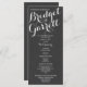 Tabuleiro Escuro, o quadro inspirado no design de texto imprimiu programas de casamento com cartão de rack com texto branco ou muda de cor do texto conforme preferido.