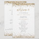 Dourado Programa de Casamento de Confetti. Tamanho de 5,5" x 8,5" a um preço orçamentário, este design elegante tem bordas de ouro com brilho falso em cada lado. Bem-vindo está em um script de estilo manual informal definido e o resto das palavras que você pode personalizar facilmente.