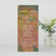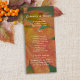 Dê aos seus convidados a ordem de sua cerimônia de casamento de setembro, outubro ou novembro com o Programa de Casamento de Cores de outono natural. Este programa casual ou clássico de cronologia do outono apresenta uma fotografia de fecho digital das folhas do Maple Coreano laranja, vermelha e amarela na árvore com um fundo verde-desfocado de floresta.