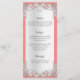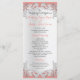 Lace floral prateado personalizado, como design com fundo de coral ou mudança de cor, conforme preferido. Personalize com detalhes do casamento, informações da cerimônia, menu ou qualquer texto neste cartão lateral.