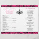 Este moderno e moderno programa de casamento de candelabros cor-de-rosa, preto e branco, ou Ordem de Serviço, tem um histórico de roleta e preto, cor-de-rosa e preto, que combina com o convite de casamento chic mostrado abaixo. ****POR FAVOR, OBSERVE que o papel de mais alto é um estoque de cartão e não se dobra bem. Todo texto é personalizável. Se você precisar de itens correspondentes, ou se quiser outra combinação de cores ou se precisar de ajuda para obter suas informações para o ajustado, envie seu pedido por e-mail para niteowlstudio@gmail.com. Se você gostaria de ter fontes mais elegantes com títulos cor-de-rosa para a festa de casamento, eu ficaria feliz em fazer isso para você, mas haveria uma taxa de design de US$ 25, pagável primeiro através do Paypal.