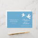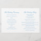 Duas pombas brancas, de dois lados, com duas fitas azuis, programa de casamento. Parte do conjunto de papéis de carta de pomba branca. Bonito tom azul pastel e branco. Edite este programa de casamento com seu próprio nome, datas, texto da cerimônia, assistentes de festa de casamento e obrigados. Um programa simples, mas elegante, simplesmente substitua o texto de amostra pelos detalhes de suas informações de casamento e dobre programas ao meio na entrega. Design exclusivo de Sarah Trett.