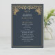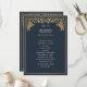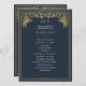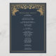 Descubra a magia do seu grande dia! Estes programas de casamento de fantasia medieval apresentam um leão real rodeado por intrincados florais de ouro e um monograma contra um fundo azul marinho, misturando elegância com um toque de grandeza. Um nome perfeito para a sua celebração de conto de fadas! O ouro apresentado nesta rubrica NÃO é folha real e é impresso em cores planas.