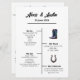 Salve papel com este programa abrangente que lista todos os eventos do dia de um lado e a festa de casamento e os obrigados do outro. O design inclui botas opcionais de vaqueiro e gráficos de ferradura.