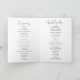 Este minimalista programa de casamento dobrado de eucalipto verde é perfeito para um casamento moderno. O design apresenta galhos e folhas botânicas elegantes e desenhadas a aquarela, desenhadas à mão, adornando quadros geométricos. Inclua uma citação ou mensagem curta, ordem de serviço, festa de casamento e obrigado da mensagem.