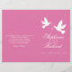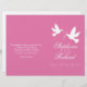 Duas pombas brancas de dois lados com duas fitas cor-de-rosa, programa de casamento. Parte do conjunto de papéis de carta de pomba branca. Bonito tom rosa e branco pastel. Edite este programa de casamento com seu próprio nome, datas, texto da cerimônia, assistentes de festa de casamento e obrigados. Um programa simples, mas elegante, simplesmente substitua o texto de amostra pelos detalhes de suas informações de casamento e dobre programas ao meio na entrega. Design exclusivo de Sarah Trett.