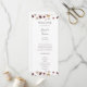 Este programa de casamento de flores silvestres de cobre é perfeito para o seu casamento típico de marsala, branco e rústico. Design apresenta uma coroa boêmica ou um buquê de cor aquática roxa, vermelha, cinza e flores rosadas cor-de-rosa, juntamente com laranja queimada e verde-ouro. Apresentados no design são papas e cevada. O design é ideal para um simples e mínimo outono ou verão de outono, um casamento de jardins de primavera. Por favor, encontre outra papelaria de casamento no resto da coleção.