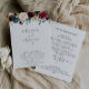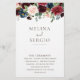 Felicite o seu maravilhoso casamento com este programa de casamento clássico de flores rico. O design apresenta lindas flores rosa, pincéis, azuis, marinhos e burgundy pintadas manualmente com folhas verdes, bem agrupadas em buquês elegantes para embelezar seus cartões de convite para eventos.