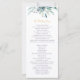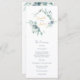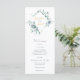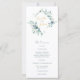 Um belo programa de casamento floral de aquarela com flores roxas e azuis.