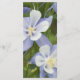 Anuncie a ordem da sua cerimônia de casamento com o Programa de Casamento das Flores Azuis. Este bonito programa personalizado de cronologia de casamento floral apresenta uma fotografia natural pintada digitalmente de flores de Columbine azul do Colorado e brancas com um fundo verde-desfocado de floresta.