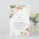 Felicite o seu casamento clássico com este programa de casamento de flores de outono geométricas douradas. O design apresenta flores brancas e cor-de-água cor-de-rosa com folhas verdes, enfeitando uma moldura geométrica dourada.