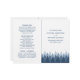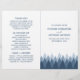 Estes programas dobrados são perfeitos para qualquer casal planejando uma celebração de casamento rústica na floresta. O design apresenta uma faixa de floresta ombre de tendência em tons de azul em um fundo branco com uma redação editável coordenada por cor. O design simples pode ser personalizado para se adequar ao seu evento especial e será a ordem de serviço perfeita para qualquer festa temática rústica, incluindo chás de panela, noivados, chás de casamento, festas de aniversário e muito, muito mais.