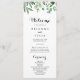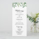 Este programa de casamento de folhagem botânica do eucalipto verde é perfeito para um casamento rústico. O design apresenta lindas folhas verdes de eucalipto, pintadas à mão, reunidas em buquês elegantes para embelezar seu evento.