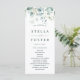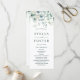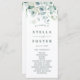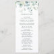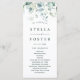 Este programa de cerimônia de núpcias apresenta cores aquáticas pintadas de eucalipto, verde botânico e folhas azuis-claras com caligrafia moderna.