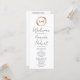 Fácil de personalizar com seus detalhes. Um simples programa de casamento de folha de rosa de ouro monograma. Programa de casamento moderno, editável, personalizável, letra escrita à mão, simples, elegante.