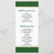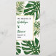 O programa de casamento das folhas tropicais verde e dourado. Este design é bonito com folhas de Split Leaf Philodendron (Monstera deliciosa) ou de Queijo Suíço e folhas de palma em verde com contorno de ouro. A sua redação está num quadro branco com contorno dourado. O verso exibe um padrão de bolinhas dourado sobre fundo verde escuro.