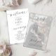 A moderna e simples escrita negra trendy limpíssima cerimônia branca e o programa de casamento do barato BUDGET, que apresenta caligrafia elegante romântica de tendências quentes e a camada personalizada de fotos na parte de trás. +++++++++++ Fácil de personalizar com o seu texto e imagem personalizados em ambos os lados!