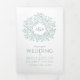 Programa de casamento de arte botânica em folha, desenhado à mão, com cinza verde, com fotos de duas páginas de cheio. Personalize este programa triplo de casamento com os seus próprios detalhes da cerimônia de casamento. Simples design de folha, circulando suas iniciais monográficas em verde e cinza em branco. Outras cores e itens de casamento correspondentes disponíveis. © Desenho original em folha e design por Sarah Trett para www.mylittleedenweddings.com no Zazzle.