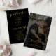 A moderna e simples escritura de ouro falso-minimalista trendy a sólida cerimônia negra e o programa de casamento do barato BUDGET, que apresenta caligrafia elegante romântica de tendências quicas e uma camada escura personalizada de fotos no fundo. +++++++++++ Fácil de personalizar com o seu texto e imagem personalizados em ambos os lados!