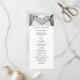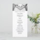 Bem-vindos aos seus convidados com este elegante programa de casamento, com a imagem de preto e branco das mãos da noiva e do noivo embrulhados num abraço em forma de coração. Susi Inc. Tradicional, porém moderna, esta design combina lindamente com toda a coleção Elegant Traditional Photo Wedding Suite. O verso, que apresenta um delicado design floral, semelhante ao padrão requintado de renda encontrado em seu vestido de noiva, lista os membros da sua festa de casamento com campos de texto facilmente editáveis.