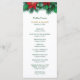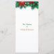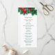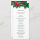 Aqui está um belo cartão do programa de casamento que é perfeito para casamentos durante o Holiday Season. Apresenta verde de Natal e poinsettia vermelha floresce como uma fronteira superior, com o seu texto personalizado em ouro e verde escuro abaixo dele. Tudo é colocado sobre um fundo branco nítido. A parte traseira do cartão tem a mesma borda floral no topo, com mais dois campos de texto para personalização.