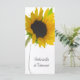 Dê aos seus convidados a ordem de sua cerimônia de verão ou casamento de outono com o Programa de Casamento Branco bonito de Girassol Amarelo. Este elegante programa cronológico de casamento florescente personalizado apresenta uma fotografia floral de um girassol amarelo no caule em um vaso de vidro com um fundo branco brilhante. Inpo perfeito para uma cerimônia de casamento e recepção de uma festa de verão.