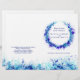 Arte simples abstrato azul-aquarela dupla em um programa de casamento branco. Edite estes programas de casamento com seu próprio nome, datas, texto da cerimônia, assistentes de festa de casamento e obrigados. Um programa simples, mas elegante, simplesmente substitua o texto de amostra pelos detalhes de suas informações de casamento e dobre programas ao meio na entrega. Programa de cerimônias de arte de aquarela azul moderna. © Quadro original e design por Sarah Trett. www.sarahtrett.com para www.mylittleedenweddings.com