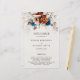 Elegante azul-Marinho, Terracotta, programa de casamento do tema floral da Terra Laranja com buquê elegante de azul-Marinho, rosas de cor Terracotta e folhas de eucalipto. Entre em contato comigo para obter ajuda sobre a personalização ou se você precisar de outro produto com este design.