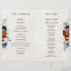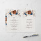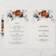 Elegante azul-Marinho, Terracotta, Cartão do programa de casamento do tema floral da Terra Laranja, com menu no verso com buquê elegante de azul-Marinho, rosas de cor Terracotta e folhas verdes de eucalipto. Entre em contato comigo para obter ajuda sobre a personalização ou se você precisar de outro produto com este design.