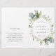 Este programa de cerimônia de núpcias apresenta cor d'água eucalipto, folhas verdes, flores com falso quadro geométrico de hexágono dourado. Para personalização mais avançada deste design, clique no link "Personalizar mais". Itens correspondentes também estão disponíveis. NOTA: Você precisará dobrá-los ao meio quando eles chegarem.