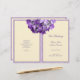 Lavanda e creme, programa de cerimônia de casamento. Dobrado com texto personalizado de quatro lados, crie este belo programa para ser usado para um casamento de verão, jardim. Uma grande e bonito hipórbita roxa enfeita o topo e aparecerá nas páginas frontal e traseira. Inclua uma nota de agradecimento nas costas.