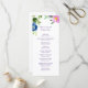 Este cartão do programa de casamento apresenta uma borda superior de flores bonito em cores de cor rosa violeta e azul aninhadas entre folhas verdes. Seu texto personalizado está em violeta roxa no meio. Esta placa de programa é suficientemente versátil para ser usada em diversos eventos, especialmente no primavera e no verão. Tem convites de casamento e outros produtos de casamento na nossa loja.