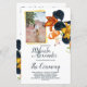 Este programa de casamento laranja e azul com lírios de tigre laranja e lírios marinhos azuis é encantador com envelopes correspondentes, etiquetas de endereço de retorno e detalhes da festa. O quadro de fotos com aquarela é fácil de redimensionar e reposicionar, e adiciona um toque exclusivo. Esses programas são fáceis de personalizar e outras opções de tamanho estão disponíveis. As placas de lírio Tiger, adesivos e etiquetas são bonitas como um conjunto de papéis de carta de cheio. Perfeito para a laranja queimada, tema azul marinho. Queda, outono ou casamento no final do verão.