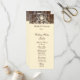 Este adorável programa de casamento estilo vintage country tem uma modelo fácil que permite preencher a festa de casamento de um lado, e a ordem da cerimônia do outro. Clique no botão personalizar se precisar alterar alguma coisa. Note que os pavimentos de madeira escura são impressos no produto — não há madeira real.