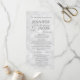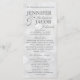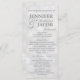 Este elegante programa de casamento apresenta um estilo branco suave, com aspecto de fundo trabalho de arte e texto prateado. Seria excelente para qualquer casamento ou evento. Ele é totalmente personalizável com o seu texto, e você pode alterar a fonte e as cores para torná-lo realmente seu.