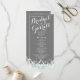 Prata, cinza e brilho da horta programas de casamento com cartão de rack impresso a design com texto branco.