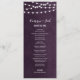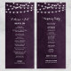 Modelo do programa de cerimônia de núpcias modernas de verão com simples e elegantes lanternas luminosas brilhantes penduradas no topo em um plano de textura de cor d'água falso impresso. Um design de pré-disquete simples e na moda, perfeito para o verão! Clique no botão PERSONALIZAR TI para personalizar texto e fontes, mover texto e criar o seu único design de um tipo de programa de casamento.