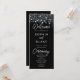 Anuncie a jornada encantadora do amor com nosso sofisticado Programa de Casamento de Luzes Negras e Brancas. Este belo pedaço de papelaria de casamento foi cuidadosamente projetado para guiar seus convidados através da celebração do seu dia especial. Com uma combinação cativante de uma simples fonte de bloqueio e uma graciosa fonte de script, este programa exumenta a elegância moderna com um toque de charme caprichoso. O fundo preto adornado com luzes delicadas e penduradas cria um ambiente mágico, simbolizando o amor e a luz que rodeia o seu sindicato. O texto branco se destaca lindamente contra o pano de fundo negro, garantindo que todos os detalhes do seu programa de casamento sejam apresentados elegantemente. Este programa de casamento preto e branco é uma escolha versátil, perfeita para aqueles que buscam um esquema de cores para o eterno ou casais que adoram casamentos rústicos, com temas country ou o fascínio mágico das luzes penduradas. Ele captura lindamente a essência de sua história de amor, acrescentando um toque de encanto a cada momento de sua celebração. Criado com cuidado e atenção aos detalhes, nosso Programa de Casamento de Luzes de Pé Negra e Branca é o perfeito guardião para seus convidados apreciarem. Ele não só os guia através dos momentos memoráveis do seu dia especial, mas também serve como uma lembrança preciosa de seu amor e compromisso. Abrace a beleza da simplicidade e a magia do amor com esta bela e moderna carta de casamento que estabelece a palco de uma celebração inesquecível da sua união. Faça com que cada momento conte e deixe o amor brilhar intensamente enquanto você compartilha seus votos e cria memórias duradouras com seus queridos convidados.