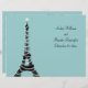 Luzes cintilantes acenam a Torre Eiffel neste programa de casamento inspirado em Paris. É impressa no papel do folheto leve, para que seja fácil dobrar ao meio.