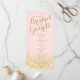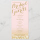 Luzes brilhantes cor-de-rosa e dourado brilham, programas de casamento com cartão de rack impresso para design com texto de ouro.