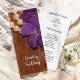 Anuncie a ordem de sua cerimônia de casamento aos seus convidados com o programa de casamento do campo de madeira Rústica e elegante, Pearls and Barn Wood. Este programa casual, porém clássico, estilo rancho personalizado, da linha cronológica do casamento apresenta uma fina fotografia floral de flores roxas ou de flores de vinca, colar de pérolas brancas e madeira de casca de couro.