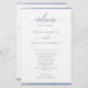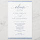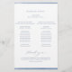 Programa Elegante de Casamento azul empoeirado com delicadas tonalidades azuis e azuis de matiz azul de bordas de cor d'água que enquadram seus detalhes do programa de casamento. Capacidade de fazer alterações e ajustes de texto selecionando personalizar ainda mais. Frente com detalhes da cerimônia de casamento, com nomes de festas de casamento e obrigado que você mande para seus convidados ou qualquer outro texto que você quiser, o nosso é simplesmente um exemplo. Sentimento elegante, simples e gracioso. Iniciais Parte da nossa Coleção "Dusty Blue Watercolor Monographic Wedding" com uma variedade de produtos de coordenação disponíveis, incluindo cartografia, mesa, números de tabelas, cartões de agradecimento e muito mais. Visite toda a coleção com este link: https://www.zazzle.com/collections/dusty_blue_watercolor_botanical_monogram_wedding-119563330291349279