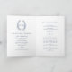 Marinho azul de mão branca desenhada oval em folha, programa de casamento de arte botânica. Simples design de folha, circulando suas iniciais monográficas em azul e branco marinho. Outras cores e itens de casamento correspondentes disponíveis. © Desenho original em folha e design por Sarah Trett para www.mylittleedenweddings.com em zazzle.